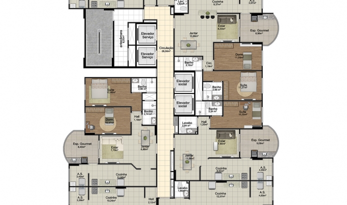 fazem parte do contrato. As medidas das plantas são internas e de face a face das paredes.
